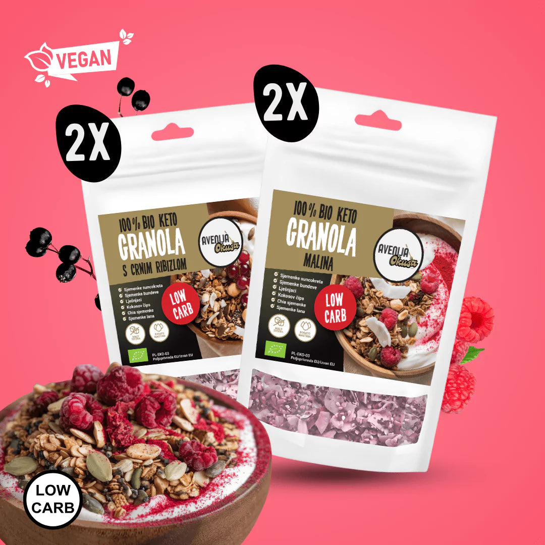 Otkrijte ukusnu kombinaciju BIO KETO granole s okusom maline i crnog ribiza! 🍓🫐